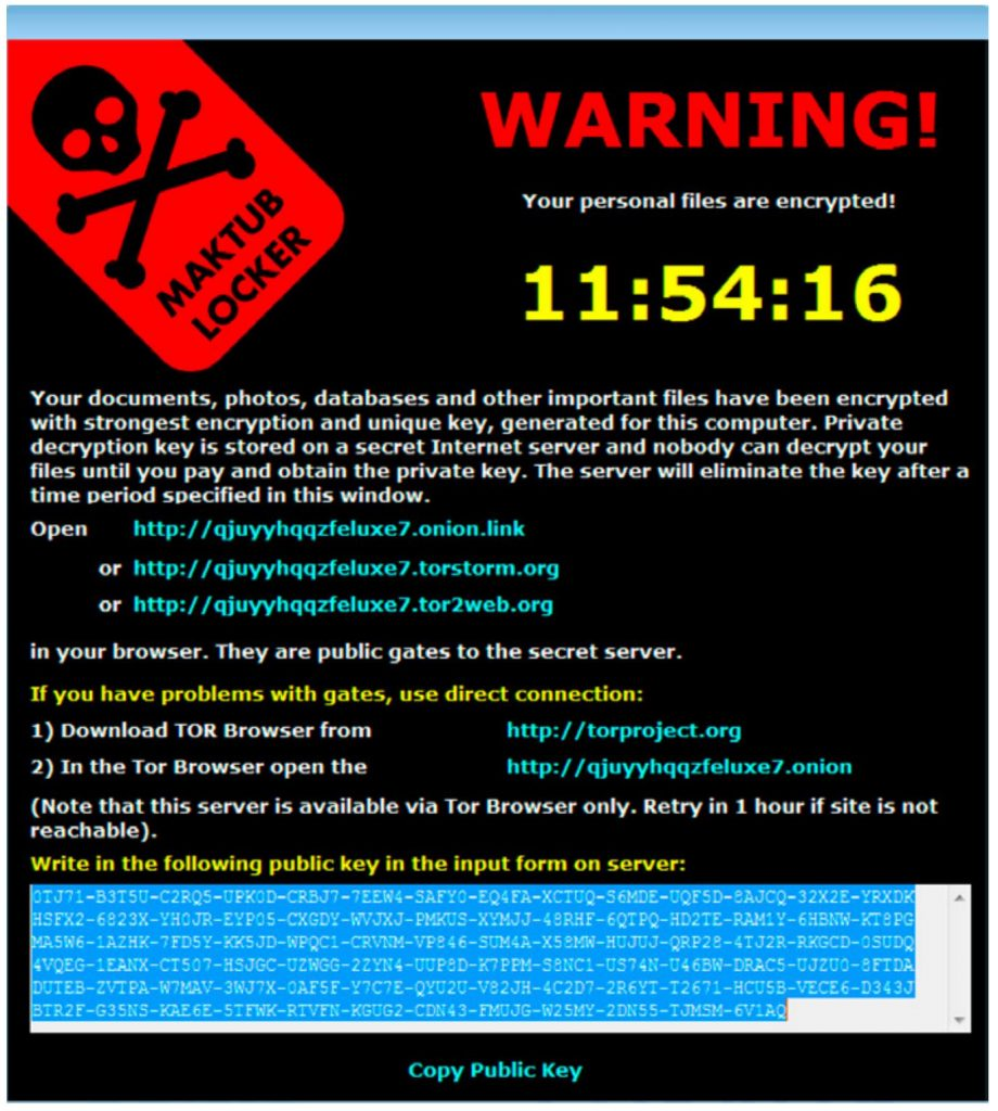 Voorbeeld van een ransomware-waarschuwingsscherm op een computer.